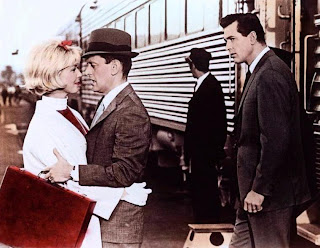 On the way home from work, Hudson breaks the news to his next door neighbor and good buddy Tony Randall. Randall takes the matter worse than Hudson and promptly starts drinking himself into oblivion. By the way, despite the famed status that Hudson and Day enjoy as a legendary screen couple, the presence and participation of Randall as the third point of the triangle (in all three movies) cannot be underestimated. He worked exceedingly well both stars, especially Hudson.